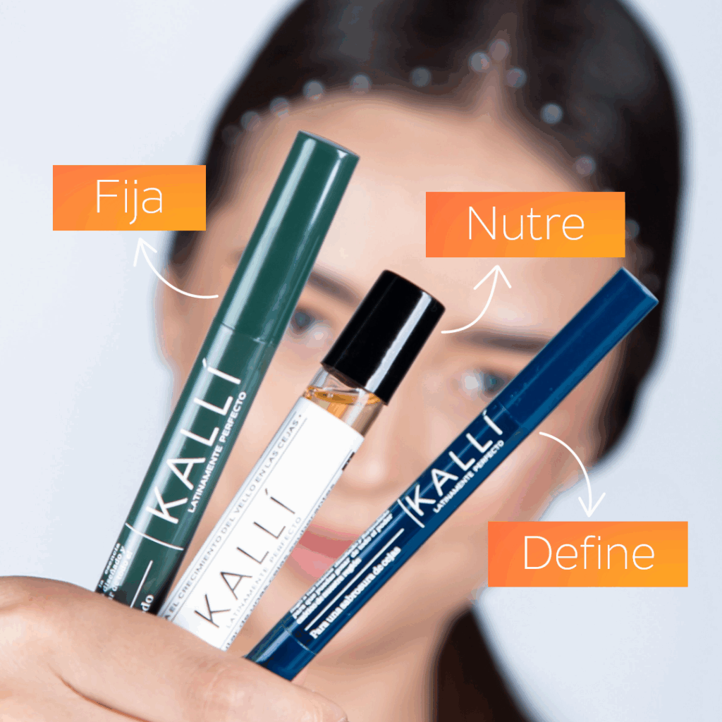 Kallí es la línea especializada en cuidado de cejas y pestañas, desarrollada para realzar la mirada con productos hipoalergénicos, sin parabenos